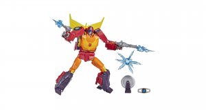 Diese Sammlerfigur aus der Studio-Serie zeigt den mächtigen Autobot namens Hot Rod, der sich seinem Schicksal stellt, Rodimus Prime wird und Unicron besiegt. Die angespannte Atmosphäre dieser berühmten Szene wird durch den abnehmbaren Hintergrund verstärkt, vor dem Hot Rod wie ein Held stehen wird. Die Figur lässt sich in 29 Schritten vom Robotermodus in den Sportwagenmodus verwandeln (Anleitung liegt dem Paket bei). Darüber hinaus enthält das Paket zwei vom Film inspirierte Blaster und zwei Schusseffekte, die legendäre Leader-Matrix, eine Kreissäge und einen Strahl.