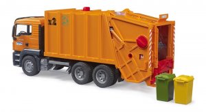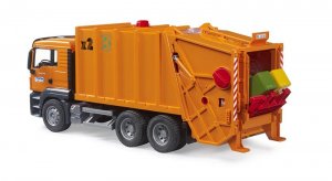 Veľa malých detí túži po tom, stať sa smetiarom. Urobte im radosť skvele spracovaným smetiarskym vozidlom. Vďaka funkčnému mechanizmu si s hračkou užijú veľa zábavy! Kabína má otváracie dvere a dovnútra sa zmestia postavičky od výrobcu Bruder. Otočný mechanizmus umožňuje vysypanie dvoch popolníc naraz. Odpad je potom posúvaný do zadnej časti stroja. Vozidlo je možné tiež vyprázdniť. Automobil má sklopné zrkadlá a profilové pneumatiky. K hračke môžete dokúpiť množstvo príslušenstva, náhradných dielov či ďalších vozidiel potrebných na údržbu miest. Vyrobené v Nemecku.