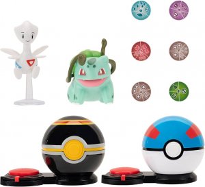 Jazwares Pokémon Surprise Attack Game Togetic with Luxury Ball vs. Bulbasaur with Great Ball
