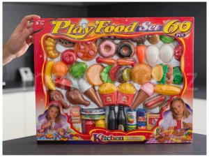 Velká sada jídla a potravin. Obsahuje velké množství potravin, ovoce, zeleniny a jídla. Materiál plast a papír. Rozměry balení cca 51 x 5 x 41 cm. Věk 3+