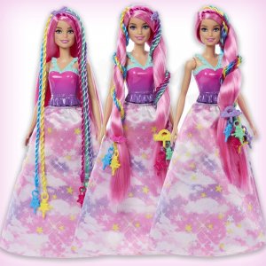 Bábika princezná Barbie™ Dreamtopia Zatočené pramienky ponúkajú toľko možností vytvárania príbehov a štylizácií, že predstavuje skvelý darček pre milovníkov rozprávok vo veku 3 rokov a starší. Bábika nestojí samostatne.