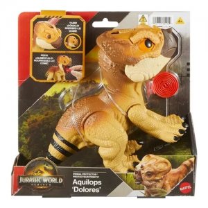 Figurka Dinosaurus Jurský svět Rebirth Aquilops Dolores se zvukem 19 cm Byla vytvořena celosvětově známou společností Mattel. Hračka pochází ze série Rebirth, která obsahuje figurky dinosaurů známých z filmu Jurský svět.