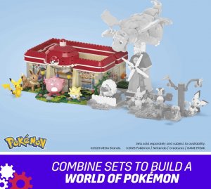 Kombinujte s ďalšími sadami Adventure Builder a vytvorte rozšírený svet Pokémonov s pohybom; každý sa predáva samostatne. 648dielna stavebnica Pokémon Center obsahujúca inovatívne Motion Brick pre vstavaný pohyb