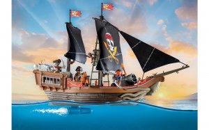 Pozor fanúšikovia pirátskych dobrodružstiev: Vydávame na neobvyklú výpravu Veľkou pirátskou loďou PLAYMOBIL! Plávajúce loď je vybavená rotujúcimi delami a tiež veľkým kanónom s možnosťou ľubovoľného nastavenia a ponúka dostatok priestoru pre pirátsku posádku. Vďaka praktickým svorkám na nohy môžu figúrky bezpečne stáť na palube. Loď je vybavená pohyblivými plachtami a vanty je možné rozložiť na obe strany. Vztlakový prvok zabudovaný v palube zabraňuje potopeniu, aj keď je úplne naplnený vodou.