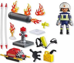 Alarm zaznieva, plynový zásobník horí! Každá sekunda sa počíta pri prevencii závažnej katastrofy. Zapojte hasičské čerpadlo k hydrantu a rýchlo uhaste požiar. Hasič z PLAYMOBIL zasahuje rýchlosťou blesku, aby skrotil plamene na plynovom zásobníku! S pohyblivými plameňmi a realistickou ropnou škvrnou môžete inscenovať veľkolepé záchranné misie. Pripojte vodné čerpadlo k hydrantu, dobre zamierte a uhaste požiar skôr, ako sa rozšíri! Postavička hasiča má odnímateľnú helmu a rukavice. Súprava obsahuje realistické doplnky ako plynový zásobník, hadica na vodu a kanister na olej. Tento pútavý Playmobil set podporuje fantáziu a umožňuje deťom sa vžiť do hrdinských akcií hasenia požiarov.