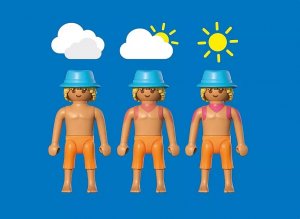 Obsahuje:1 muž s kloboukem, 1 žena s náhradným oblečením, 2 lehátka, 2 ručníky, 1 palma, 1 odkládací stolek, 2 melounové nápoje, 1 mísa s ananasem, 1 plážová taška, 1 čítačka, 1 chladicí taška s nápoji, 1 náramek, 1 MP3 prehrávač, 1 opalovací krém