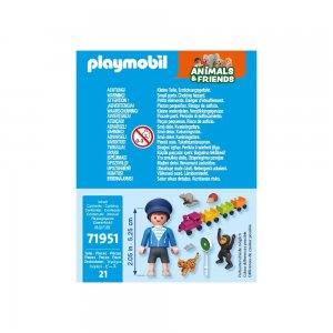 Všetci na palubu – zvierací vláčik je v prevádzke! Nastúpte, vyjdite a objavujte! So sadou PLAYMOBIL Vláčik so zvieratami sa vydáte na radostnú cestu svetom Zvierat a priateľov. Strecha kabíny rušňovodiča je odnímateľná a vagóny je možné flexibilne spájať – každá cesta sa tak stane novým dobrodružstvom! Mladý rušňovodič so sebou berie farebnú posádku zvieracích pasažierov: rýchle mláďa geparda, svižnú krysu, zvedavú opičku a roztomilého ježka – všetci majú svoje obľúbené miesto a úsmev. Vďaka mnohým milým detailom a doplnkom táto sada zaisťuje nápadité cesty plné zábavy, pohybu a zvieracej radosti – ideálne pre malých rušňovodičov a milovníkov zvierat v detskej izbe!