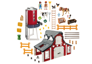 PLAYMOBIL® - Velký statek s příslušenstvím V budově farmy je kráva a kůň stáj s venkovním výběhem. Balíky slámy nebo jiné zboží lze uložit v podkroví. Vč. Silo, zvířata a další doplňky.
