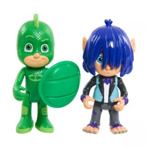 Gecko a Kevin sa stretnú v sade figúrok PJ Masks. Zahrajte si vzrušujúci súboj medzi dvoma pohyblivými akčnými figúrkami, v ktorom rozhodnete, kto z týchto dvoch protivníkov vyhrá. Gecko, nepostrádateľný člen PJ Masks, k špeciálnym schopnostiam patrí schopnosť chodiť po stenách a dokonca sa maskovať ako skutočný chameleón. Kevin je vlkolak. On a jeho priatelia často stoja v ceste PJ Masks.
