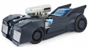 Batmobil transformující se do bitevního módu.