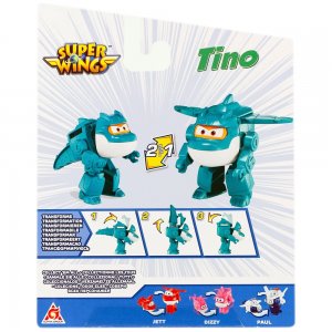 Ako všestranná 3-v-1 figúrka sa Tino dokáže premeniť z lietadla na robota a dinosaura, keď misia vyžaduje veľkosť, silu a mohutný rev! Figúrka Super Wings sa valí na kolieskach a má pohyblivé ruky a nohy pre dynamické pózy a nápaditú, akčnú hru.