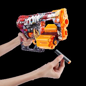 S kapacitou 12 šípok dokáže X-Shot Skins Dread zostreliť konkurenciu zo vzdialenosti až 27 m pomocou dvoch rotujúcich bubnov. Šípky X-Shot Skins sú vybavené technológiou vzduchového vrecka, ktorá umožňuje rýchlejší, ďalší a presnejší odpal.