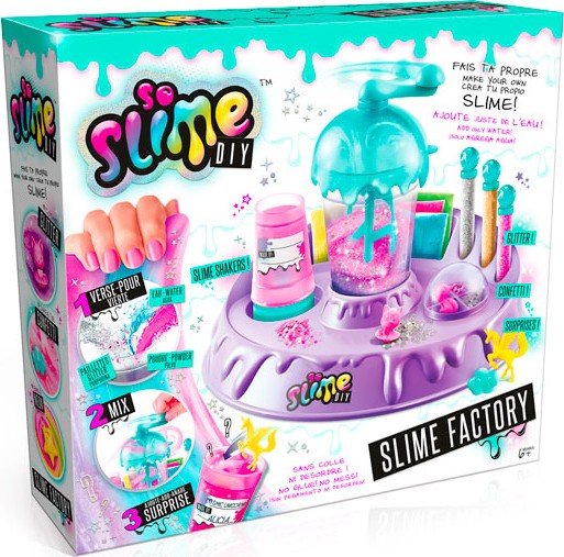 Balení obsahuje: továrna na sliz, 10 x sáček s práškem na výrobu slizu, konfety, třpytky, 4 x figurka, špachtličku, nálevku, 3 x kelímek, štítky.