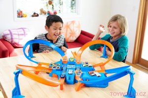 Pokud chceš být divákem vzrušujících bouraček a kaskadérských kousků, umístěte na dráhu více autíček Hot Wheels,