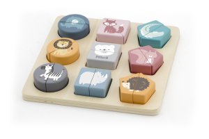 Dřevěné puzzle pro nejmenší. Obsahuje 18 dílků, ze kterých lze složit 9 obrázků. Rozměry jednoho dílku cca 4,5 x 2,5 cm. Rozměry balení cca 21 x 21 x 3,5 cm. Věk 18m+