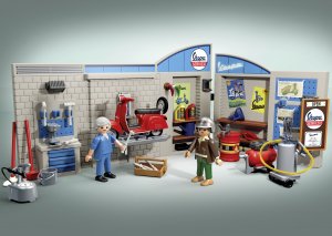 Vítejte v dílně Vespa ze 60. let. Tato dílna je snem všech malých i velkých fanoušků legendárního skútru Vespa. Vybavená pohyblivým zvedákem a mnoha policemi na lahve s olejem, nářadí a náhradní díly poskytuje dostatek prostoru pro opravu vašeho oblíbeného skútru.