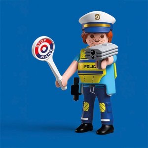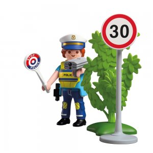 Policista od PLAYMOBIL® s radarem zajištuje pořádek a bezpečnost na silnicích.