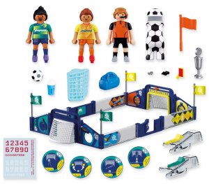 Rychlá práce nohou, odvážné střely a překvapivé akce udržují každý zápas plný napětí! Děti si mohou vytvářet nekonečné hry, plánovat vítězství a vymýšlet perfektní brankové pozice. Každý detailní doplněk a figurka dotvářejí atmosféru velkého stadionu. Tato dynamická stavebnice přináší soutěživou zábavu do každé herny a nabízí nekonečné možnosti, jak si zápasový den přizpůsobit – klasické vzrušení z PLAYMOBIL pro každého malého fotbalového fanouška!