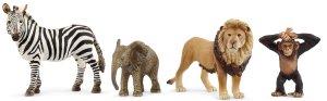 Zebra, lev, slon a šimpanz - co mají společného? Všichni pocházejí z Afriky! Lev je král zvířecí říše. S jeho majestátní hřívou a krásnou lesklou srstí se prochází savanou jako pravý monarcha. Když se lev přiblíží, zebra napne uši. Obvykle se setkávají jen na okamžik u zdroje vody. Malé slůně se však lva nebojí, chce si hrát se svými přáteli. Ve skutečnosti se mládě šimpanze s lvy setkává jen vzácně, protože žijí v hustých afrických lesích, daleko od savany. Svůj den tráví houpáním se z jednoho stromu na druhý.