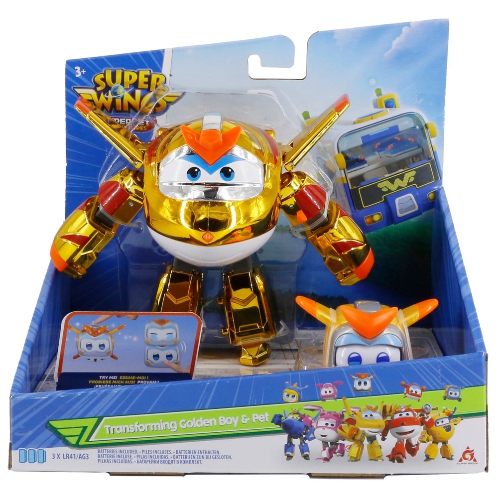 Super Wings Transforming Character Golden Boy mit Pet