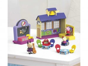 In diesem neuen Spielset können Kinder Musik- und Kunstthemen, Geschichtenerzählen und mehr in Peppas Schulklassenzimmer genießen, begleitet von Madam Gazelles Geplapper und anderen aus der Serie bekannten Geräuschen.