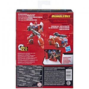 Lernen Sie Ironhide kennen, denn Transformers-Fans erinnern sich am besten an ihn! Dieser Roboterheld erlebt zusammen mit anderen Autobots seinen Höhepunkt in der Szene, die als „Fall von Cybertron“ bekannt ist und in der Bumblebee, Ironhide und ihre Verbündeten einen endgültigen Kampf gegen die Decepticons führen, die drohen, den Planeten zu übernehmen und schließlich zu zerstören. Mit einem abnehmbaren Hintergrund, der aus der Verpackung der Figur erstellt werden kann, können Sie diese epische Szene in verschiedenen Variationen immer wieder neu erleben. Darüber hinaus hält Ironhide seinen typischen Blaster in der Hand, den er auch im Film hat. Die Ironhide-Figur kann in 22 Schritten vom Robotermodus in den Cybertronian-Panzermodus umgewandelt werden, inklusive Anleitung. Dank der Studio Series-Reihe haben Transformers-Filmliebhaber die einmalige Chance, über die Leinwand zu laufen und spannende und actionreiche Situationen aus ihren Lieblingsfilmen zu erleben. Im für die Deluxe-Klasse typischen Maßstab sind die Figuren dieser Serie ca. 13 cm groß und eignen sich daher ideal zum Spielen und Präsentieren im Regal.