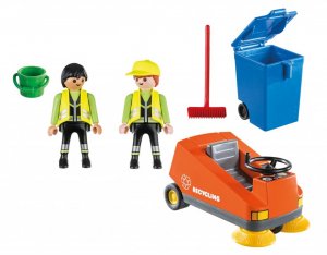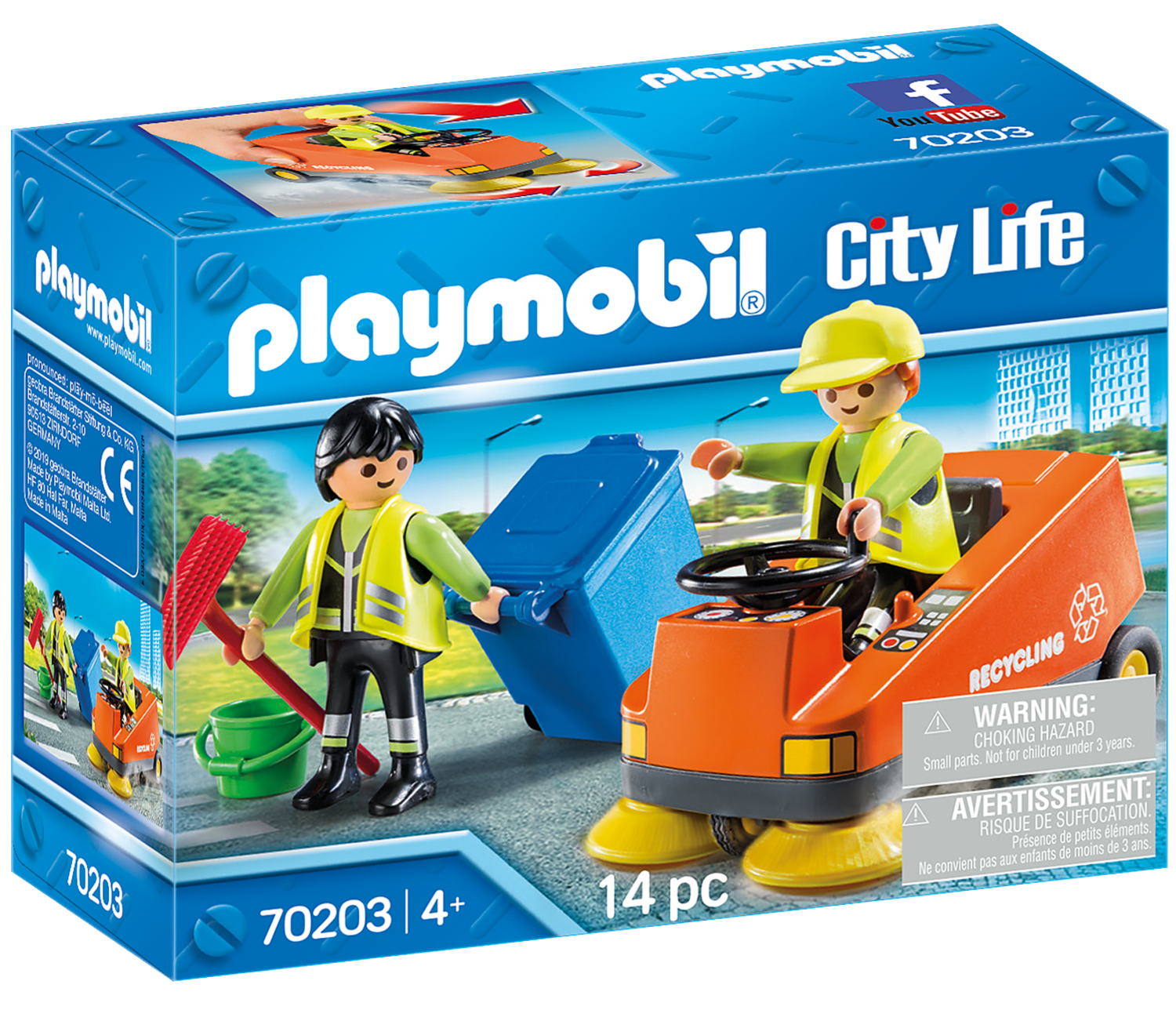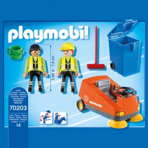 Pořádek na ulicích zajišťuje speciální zametací stroj se dvěma rotujícími kartáči Případné odpadky je pak třeba zamést a hodit do popelnice. Obsahuje 2 figurky zaměstnanců technických služeb Při pohybu stroje dopředu se karttáče automaticky otáčí Součástí je i příslušeství jako popelnice, kbelík…