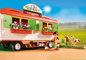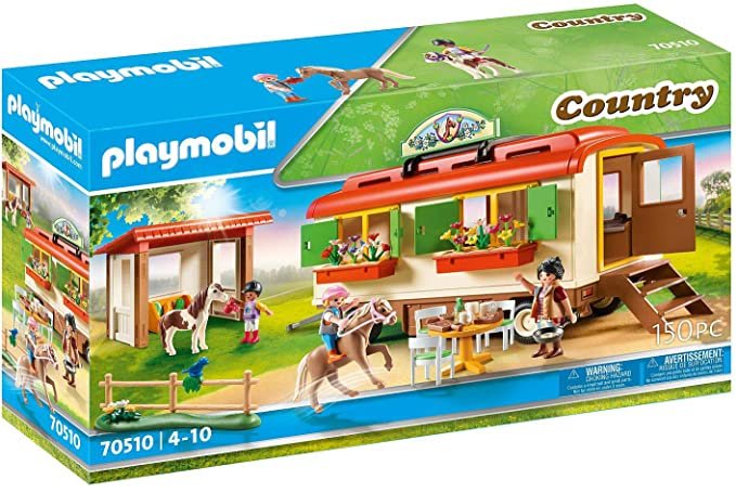 Das Spielset beinhaltet eine Maringotka mit Schlaf- und Kochmöglichkeit, einen Unterschlupf, drei PLAYMOBIL-Figuren, zwei Ponys, einen Tisch, Stühle, Pferdefutter, Schlafsäcke und viele weitere schöne Accessoires für spannende Pferdeabenteuer.