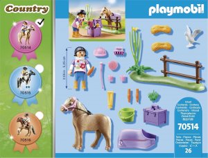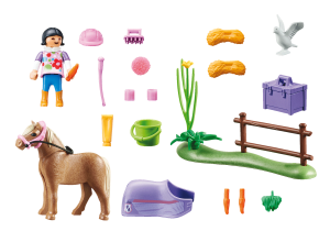 Ponys sammeln macht großen Spaß. Ein kleines Mädchen und ihr geliebtes Islandpony sind unzertrennliche Freunde. Ein Pferdeliebhaber kümmert sich täglich um sein Pony, bringt ihm frisches Heu, pflegt sein Fell und reinigt seine Hufe. Lieferumfang: 1x Figur, 1x Islandpony-Figur, Heu, Eimer, Karotte, Zaunelement und weiteres Zubehör.