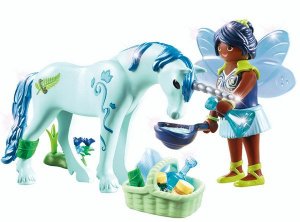 Feen und Einhörner hatten schon immer eine magische Verbindung. Feen kümmern sich liebevoll um ihre Einhornfreunde. Vila isst ein besonders leckeres Essen mit ihr. Frisches Obst und Gemüse und sogar ein zauberhafter Apfel werden im Korb zubereitet. Das Einhorn ist aufgeregt. Das PLAYMOBIL-Bauset bietet allen Ihren Märchenfreunden jede Menge Spielspaß. Das Paket beinhaltet: 1x Feenfigur, 1x Einhornfigur, Korb und weiteres Zubehör