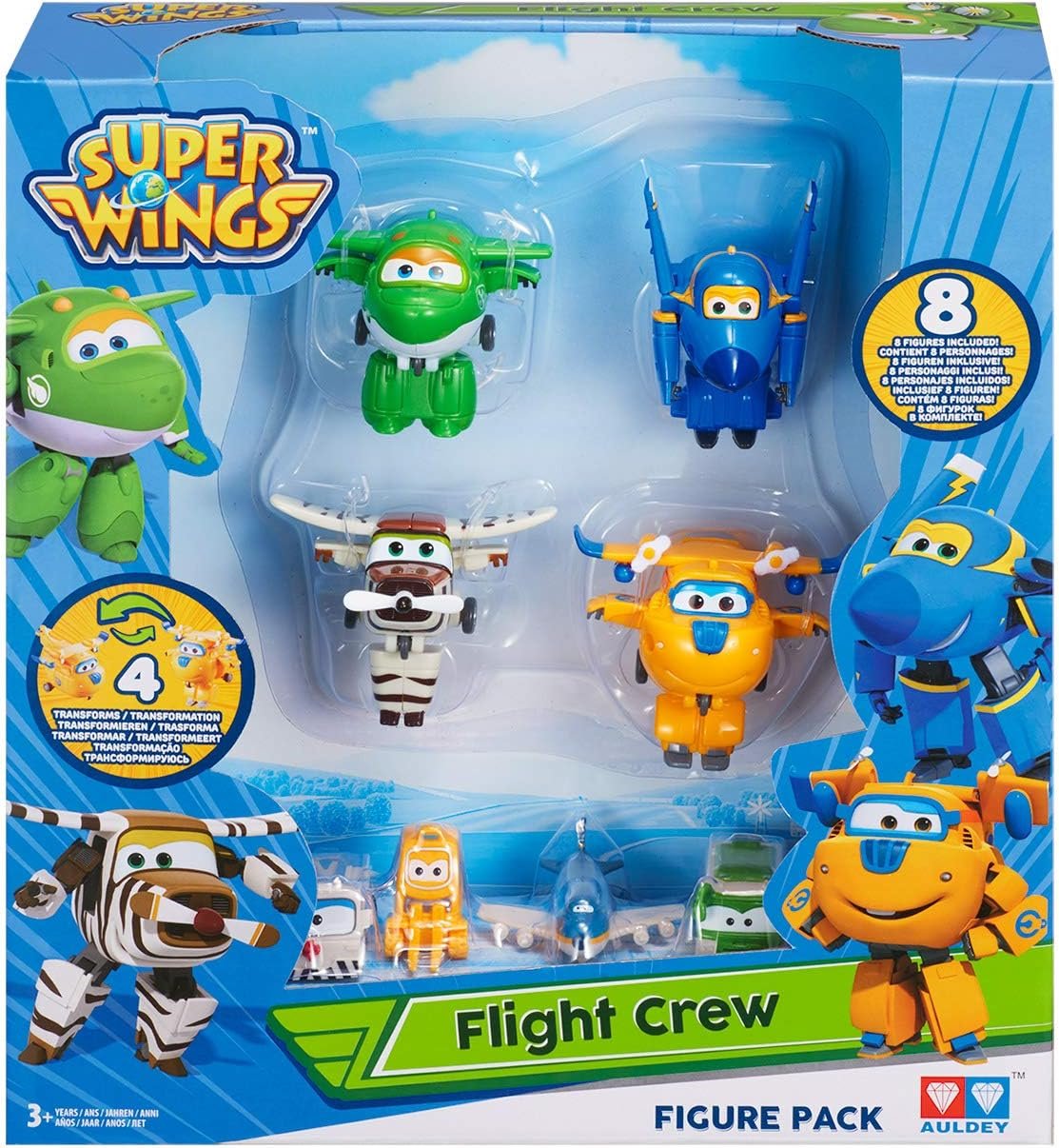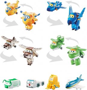 Táto súprava Super Wings s 8 figúrkami vám prináša postavičky z obľúbenej detskej série. Premeňte 4 Transform-a-Botov, Jeroma, Miru, Donnieho a Bella, z lietadiel na roboty a späť. Súčasťou sú aj štyri ďalšie PVC figúrky pre ešte viac zábavy. Prehrajte si obľúbené momenty Super Wings s postavami alebo si vytvorte vlastné akčné príbehy!