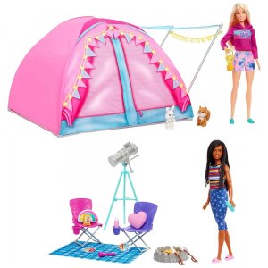 Tento herný set inšpirovaný zbrusu novou sériou Barbie nabáda k dokonalému dobrodružstvu s bábikou Barbie „Malibu“ Roberts, bábikou Barbie „Brooklyn“ Roberts a ich vlastným kempingovým stanom!