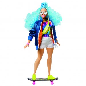 Barbie extra s modrým afro účesem