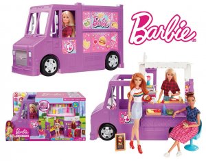 Do mesta práve prichádza bábika Barbie® so svojou vyhlásenou pojazdnou reštauráciou. V tomto hernom sete na teba čaká pojazdný food truck s pestrofarebnou potlačou, ktorý láka zákazníkov zo širokého okolia na niečo dobré pod zub. Uži si veľa zábavy plnej prípravy a servírovania dobrôt. Vo vnútri sa ukrýva dostatok herného priestoru a viac ako 25 doplnkov, medzi ktorými nájdeš napríklad ceduľu s dennou ponukou, kuchynské náčinie a hrnce, fritézu na hranolky, rôzne potraviny a ochucovadlá, tácky na servírovanie alebo posedenie pre hladných hostí. Nechýba samozrejme ani rúra, gril a všetko pre prípravu obľúbených ovocných štiav. Pomôž bábike Barbie® obslúžiť všetkých hladných hostí a potom im vystav účet pri pokladni. Tak hor sa do varenia. Set neobsahuje bábiku. Vhodné pre deti od 3 rokov.