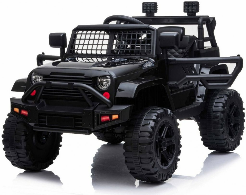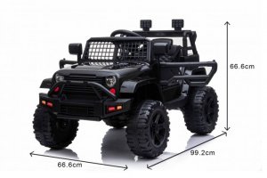 Beneo Elektrické autíčko Offroad s pohonom zadných kolies 12V batéria Vysoký podvozok široké sedadlo Odpružené nápravy 24 GHz Diaľkový ovládač MP3 prehrávač so vstupom USB/SD led svetl čierna