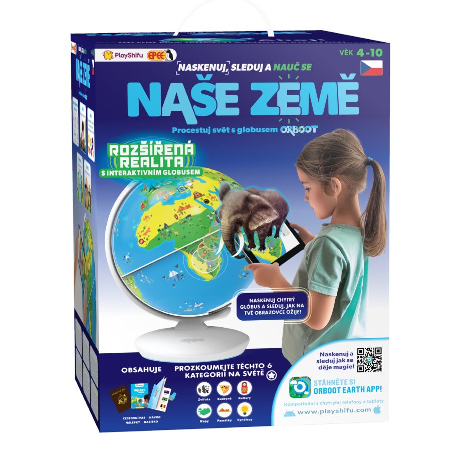 Malí cestovatelé a malé cestovatelky budou nadšení z globusu, který jim ukáže spoustu zajímavostí a faktů z 6 zájmových kategorií od kultury přes památky po vynálezy. Stačí stáhnout aplikaci do vašeho chytrého zařízení a hurá do prozkoumávání celého světa!