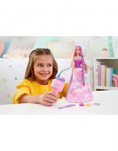 Malí štylisti môžu vytvárať svoje vysnívané štylizácie vďaka bábike princeznej Barbie™ Dreamtopia Zatočené pramienky! Bábika Barbie® má veľmi dlhé vlasy (cca. 21 cm), dúhové prúžky na zaskrutkovanie a splietanie a nástroj, vďaka ktorému je styling príjemný a ľahký.