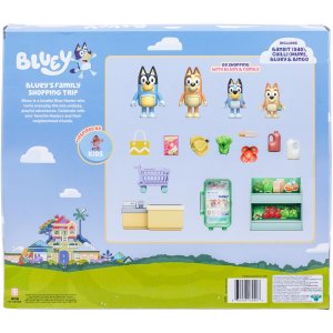 Vydajte sa na vzrušujúci nákupný výlet do supermarketu s Bluey a jej rodinou. S touto láskyplne navrhnutou hracou sadou Bluey si môžete hravo vytvoriť rodinné nakupovanie. Naložte nákupný vozík Bluey, Binga, Bandita a Chilli a preskúmajte police, chladničku v supermarkete a pokladňu.