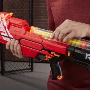 Zažite intenzívnu priamu súťaž s dokonalou presnosťou a silou blasterov Nerf Rival! Vyberte si stranu a vydajte sa do bitky ako Team Red, Team Blue alebo Phantom Corps. Vydajte sa do konkurenčných hier s blasterom Hypnos XIX-1200, ktorý je vybavený skladacou pažbou a je dodávaný s dvoma 12 guličkovými zásobníkmi a 24 guličkami. Zahŕňa skladaciu pažbu pre vytvorenie kompaktnej konfigurácie pre úzke priestory, prenositeľnosť a skladovanie. Dodáva sa s dvoma 12 guličkovými zásobníkmi, 24 nábojmi s vysokým nárazom a 2 sponami, ktoré sa pripevňujú k taktickej lište, aby udržali druhý zásobník na rýchle nabíjanie. Vystrelí rýchlosťou 100 stôp za sekundu (30 metrov za sekundu). Má pružinový mechanizmus, zámok spúšte, 2 taktické lišty, uvoľnenie pažby a uvoľnenie zásobníka.