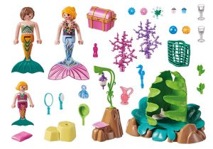 Balenie obsahuje: morskú pannu s morským mládencom a morským dievčatkom, salón, lucerničku, truhlu s perlami a množstvo ďalších doplnkov.