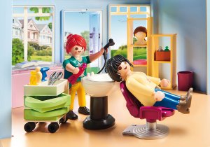 Výmenné parochne, príčesky a doplnky poskytujú vo vašom kaderníctve vzrušujúce výsledky. Salón je vybavený umývadlom, holičkou s holiacou sedačkou a mnohými krásnymi detailmi. Na jednoduchšie hranie je dom z jednej strany otvorený a má strešné okno. Na vyjadrenie individuality a rozmanité hranie obsahuje hárok samolepiek pre individuálny dizajn.