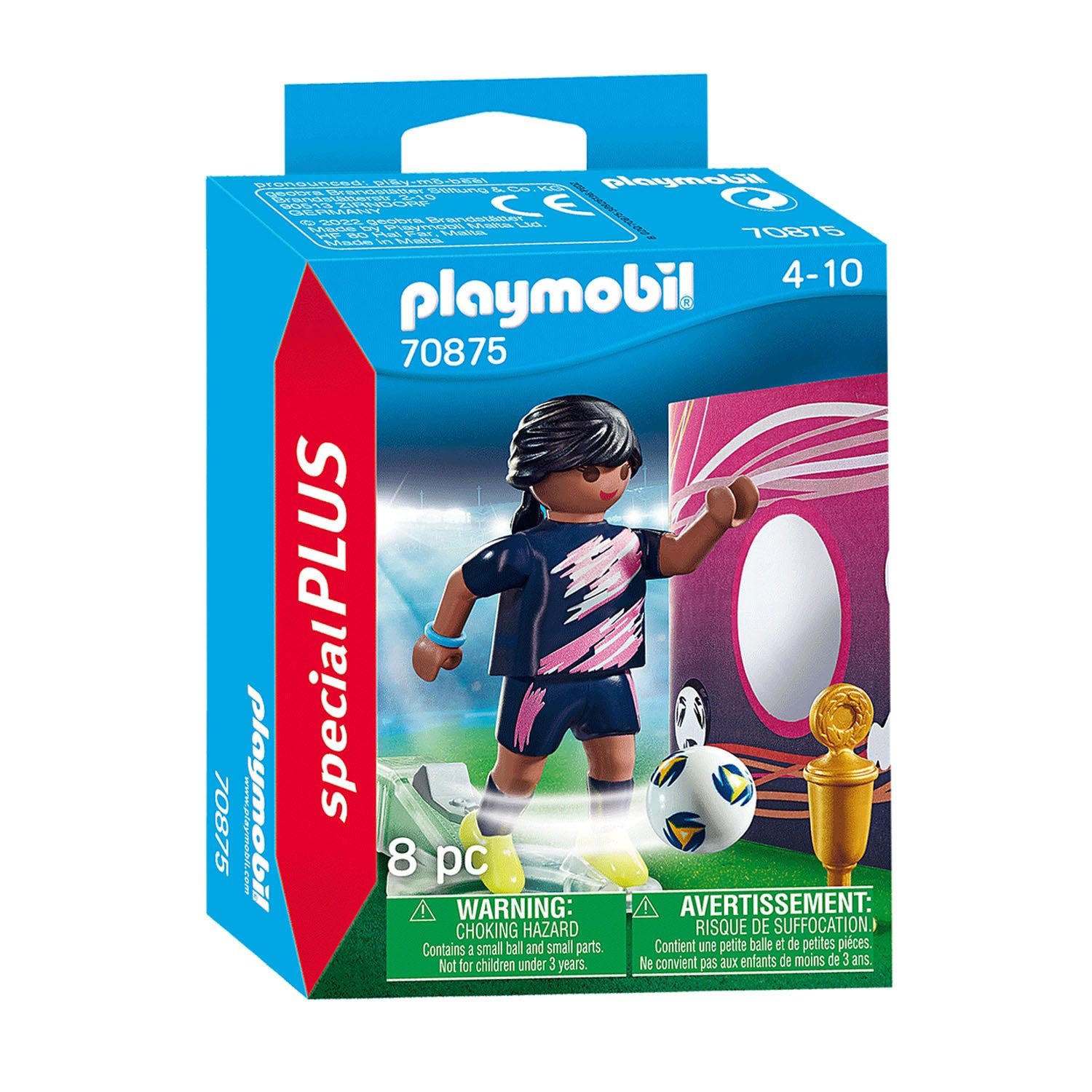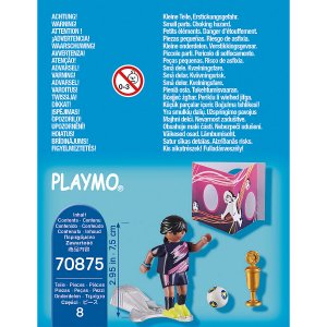 Fotbalistka PLAYMOBIL se chystá na velký zápas. Střelba do branek je na pořadu dne. Sportovkyně ambiciózně střílí míč na branku. Je odhodlaná vyhrát zlatý pohár. balení obsahuje: 1x figurku a další doplňky