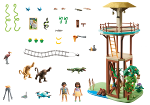 Najlepší výhľad na džungľu ponúka výskumná veža s otočnou plošinou a odnímateľným funkčným kompasom pre ďalšiu túru. Veža slúži aj ako úkryt pre opice howler. S rozsiahlym príslušenstvom a kartou znalostí zvierat „Howler Monkey“ so vzrušujúcim zvukovým obsahom. Rozmery: 33 x 24 x 50 cm (DxHxV).