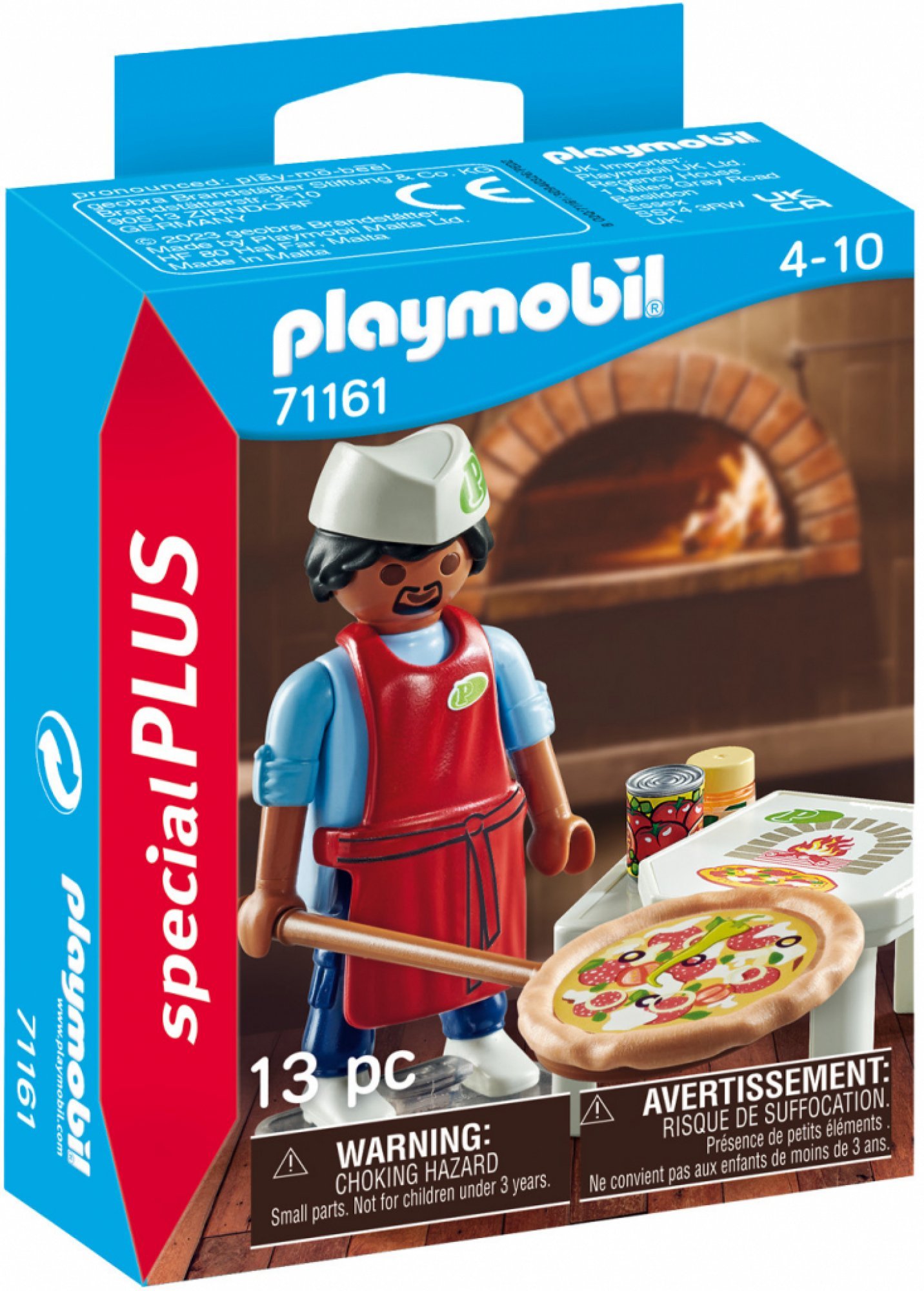 Súprava Special Plus obsahuje figúrku PLAYMOBIL s kuchárskou čiapkou, stôl, paradajky v konzerve, krabici od pizze a ďalšie doplnky. Zásteru a čiapku je možné zložiť. Súčasťou výrobku je základná doska pre stabilnejšie postavenie figúrky.