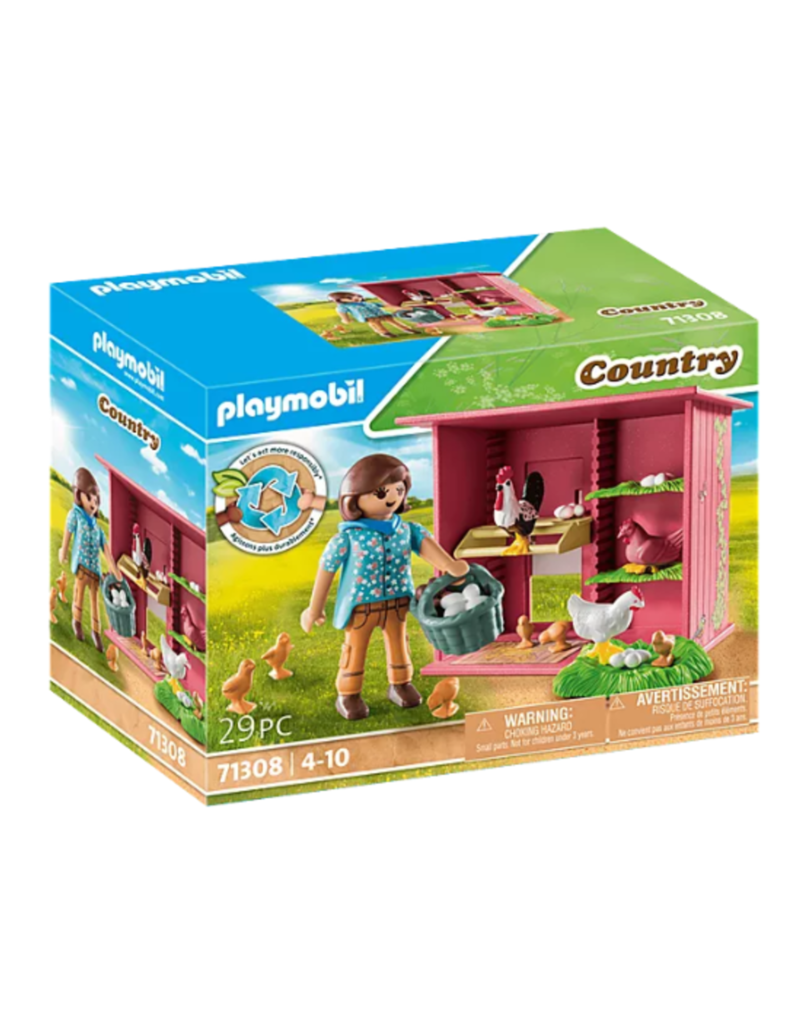 Čo by to bolo za farmu bez kurčiat? S touto farebnou hernou sadou PLAYMOBIL sa kuriatka môžu presunúť na vašu farmu. Kurník je vybavený dvoma policami a bidielkom a je domovom dvoch sliepok, kohúta a šiestich kurčiat. Sliepky a kohút môžu byť pripevnené k bidielku nohami. Posuvnú dosku v zadnej časti domu je možné otvoriť a zavrieť. Dodajte svojmu kurníku individuálny nádych pomocou priložených veselých samolepiek. 28dielna sada hračiek obsahuje figúrku PLAYMOBIL, kurník a tiež dve kuriatka, kohúta a šesť kuriatok. Náš krok k udržateľnejšej budúcnosti V budúcnosti bude naše nové logo označovať všetky naše produkty, ktoré sú vyrobené v priemere z viac ako 80 % udržateľných materiálov. Tie sa skladajú z recyklovaných a bioplastov. Na balenie sa používajú fóliové vrecká vyrobené zo 100% recyklovaných plastov