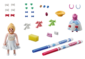 Vneste do hry farby s PLAYMOBIL Color! Vytvárajte slávnostné večerné šaty a navrhujte rôzne šaty a sukne znova a znova pomocou priložených pier. Farba sa ľahko zmýva - pre nekončiacu zábavu.