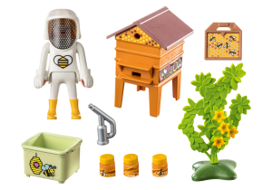 Med je predovšetkým príbeh know-how. Ak chcete znovu objaviť chuť dobrého čerstvého medu, môžete sa spoľahnúť na včelára Playmobil. Vybavená svojou ťažkou kombinézou sa stará o včely, aby maximalizovala šance na získanie lahodného zlatého medu. Poháre medu od tohto mladého včelára, zaručene prírodné a miestne, určite potešia všetky chuťové bunky. Táto herná sada obsahuje včelí úľ, mnoho pohárov medu a veľký kvet. Včelár je vhodne oblečený.