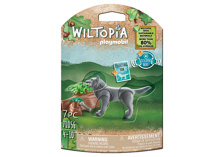 WILTOPIA je prvý ekologicky šetrný produktový rad od PLAYMOBIL, ktorý sa v priemere skladá z viac ako 80 % udržateľných materiálov. Sada obsahuje vlka PLAYMOBIL vrátane príslušenstva, kartu znalostí o zvieratách na zbieranie a vzrušujúce audio obsah. S WILTOPIA môžu deti objavovať zvieratá a prírodu vo svojom vlastnom vesmíre a ponoriť sa do nápaditých hier na hranie rolí.