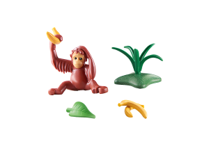 Orangutany sú kráľovi korún stromov, pretože väčšinu svojho života trávia v korunách stromov. Orangutan je jedným z našich najbližších príbuzných. Obzvlášť fascinujúce sú jeho dlhé paže, ktoré mu siahajú až ku členkom, keď stoja. Orangutany sú veľmi vynaliezaví a dokážu dokonca vyrábať nástroje a nástroje. Napríklad pri chytaní rýb používajú polená ako oštepy. Ľudoopy si stavajú hniezda vysoko na stromoch. Tam sú dobre chránení pred predátormi. Hrací svet Wiltopia od PLAYMOBIL pozýva deti, aby objavovali vzrušujúce oblasti nášho sveta, ktoré si zaslúžia ochranu, a ich početných zvieracích obyvateľov, a jedinečným spôsobom kombinuje hru a učenie. Súprava obsahuje mladého organutana, rastlinu, list, banány a kartičku znalostí o zvierati.