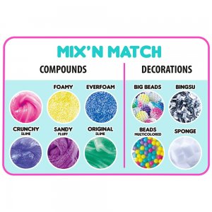 Sada Mix'in Sensations obsahuje šest různých hracích slizů, které můžete smíchat s přiloženými čtyřmi ingrediencemi na šperky, abyste vylepšili vzhled a dojem. Jak se bude cítit vaše oblíbená směs? jak to bude vypadat?